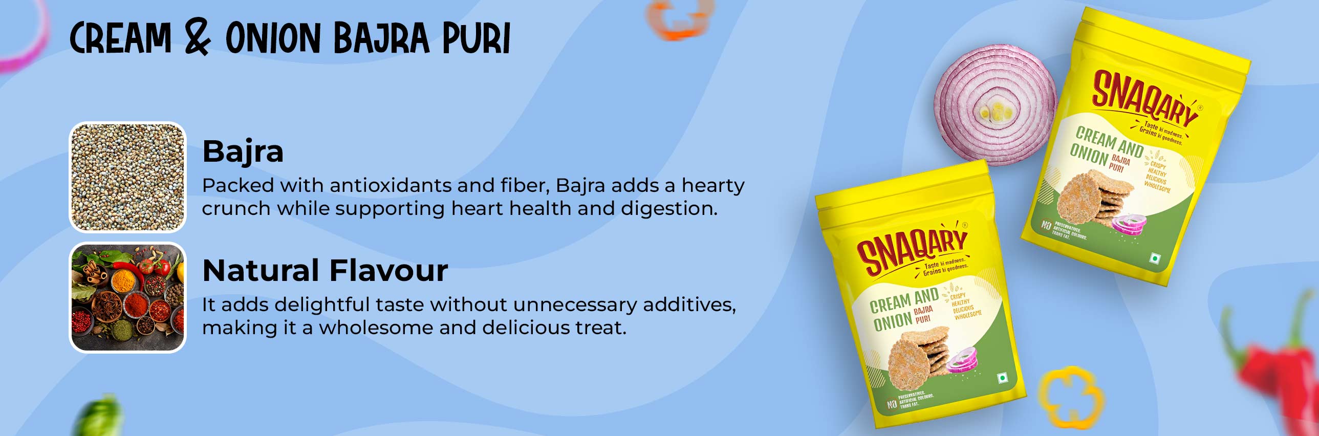 New and interesting flavors, packed with the goodness of bajra, Cream and Onion Bajra Puri is perfect for snack time and are sure to satisfy all your cravings, without making you feel any guilt.