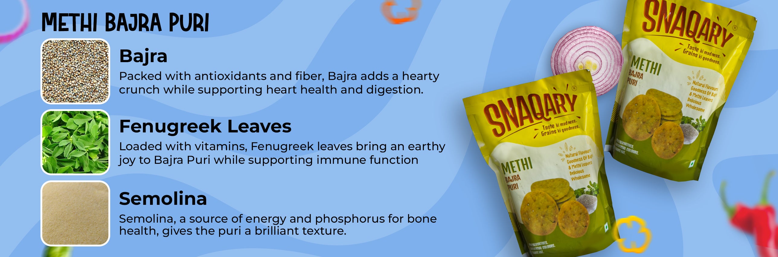 Snaqary Bajra Puri can be enjoyed with a variety of accompaniments. Bajra Puri can be had in chaats, dahi bhalla papdi and much more!