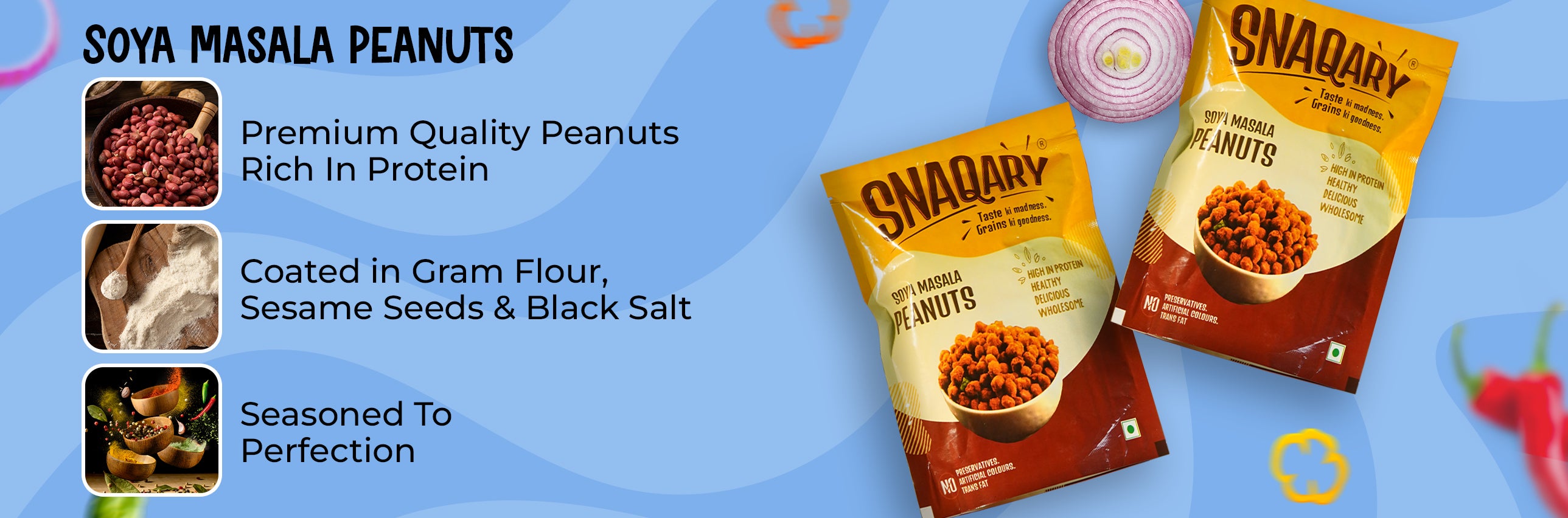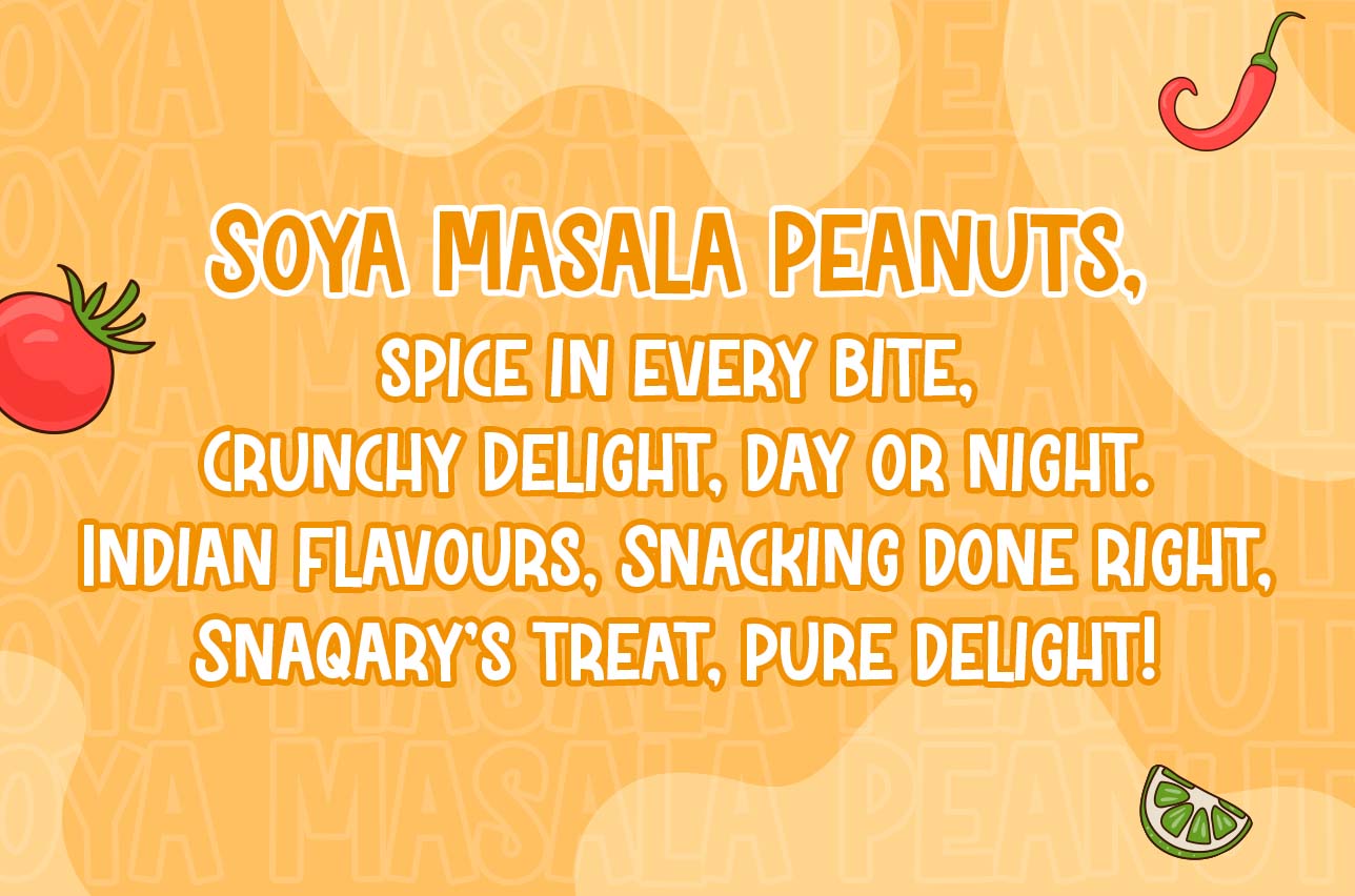 Soya Masala Peanuts, a tantalizing twist on a classic snack! These crunchy, flavorful peanuts are infused with a delectable blend of spices, giving them a zesty and aromatic kick.
